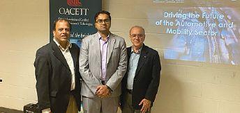 Pictured from (left to right): Anil Kolassery, C.E.T., John George, P.Eng. (speaker), and Rasheed Khan, A.Sc.T. at the Ontario Vehicle Innovation Network’s seminar on zero-emission vehicles.