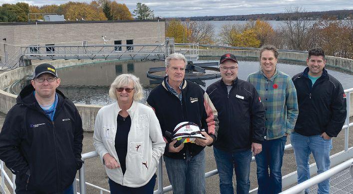 From left to right: Paul Villeneuve, C.E.T., Vanessa Bernicky, C.E.T., Al Billiald, C.E.T., Rob Wright, C.Tech, Kathryn Reinlander, C.E.T., and Yanick Beaudin, C.Tech., at the City of Brockville’s wastewater facility.