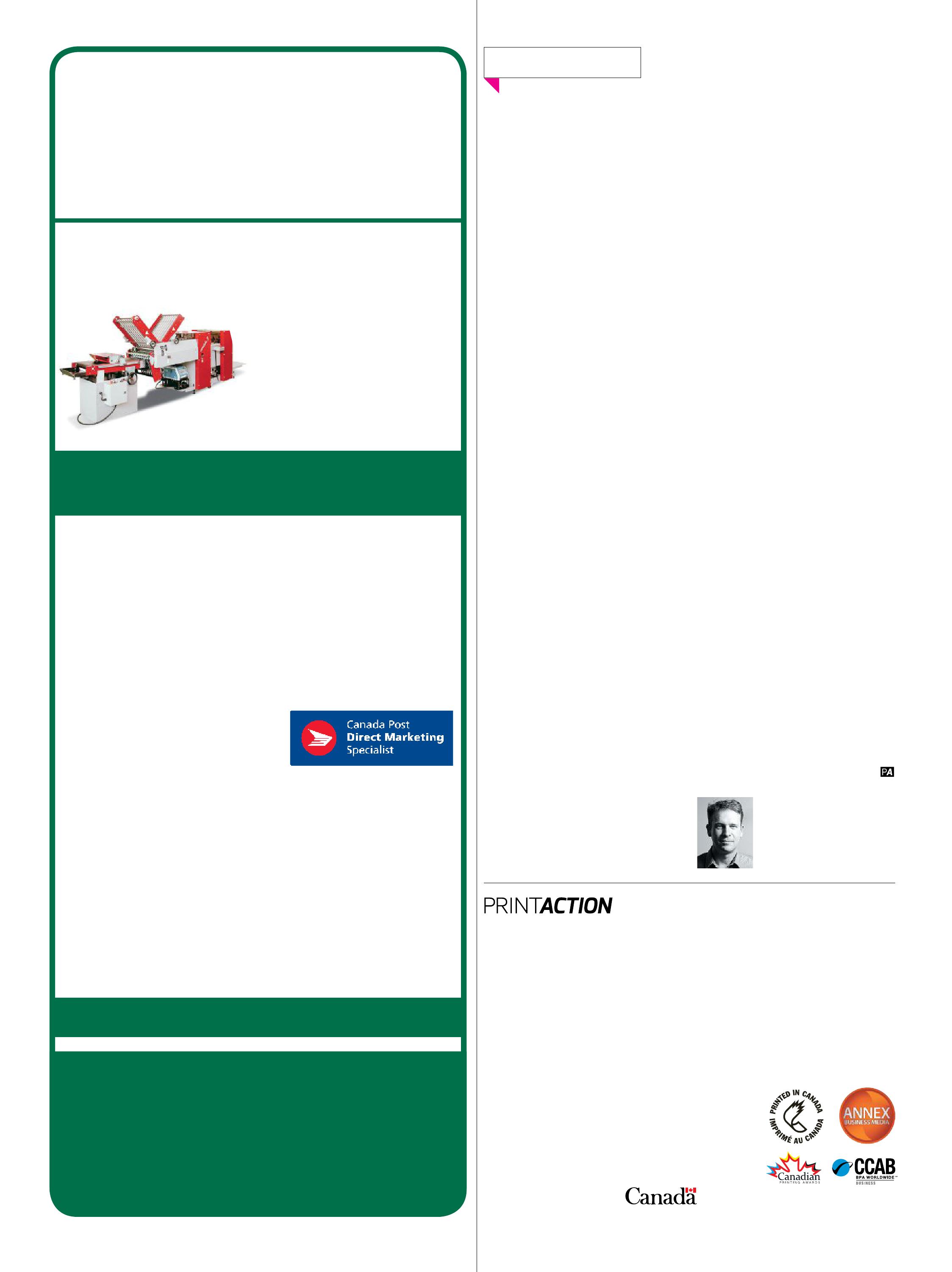 In late January, Annex, which owns PrintAction magazine, teamed up with Newcom Business Media to acquire 67 trade-publishing brands from Vancouver-based Glacier Media Inc., a deal worth $19.65 million. Annex immediately took control of 15 Glacier Media properties, adding to its existing stable of more than 40 businessto-business brands. Annex Newcom Limited Partnership was formed to hold several other media properties.
