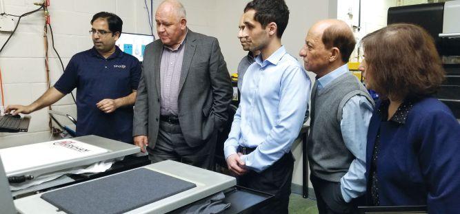 (L to R): Jared Cotterill of Surrey Digital Printing, and Janice Goldring, Jason Sham, Victor Torres, and Surinder Dhiman of Konica Minolta Canada.