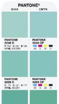 PANTONE number Ink formulation recipe Single spot color ink CMYK equivalent Swatch printed with 7 ink set