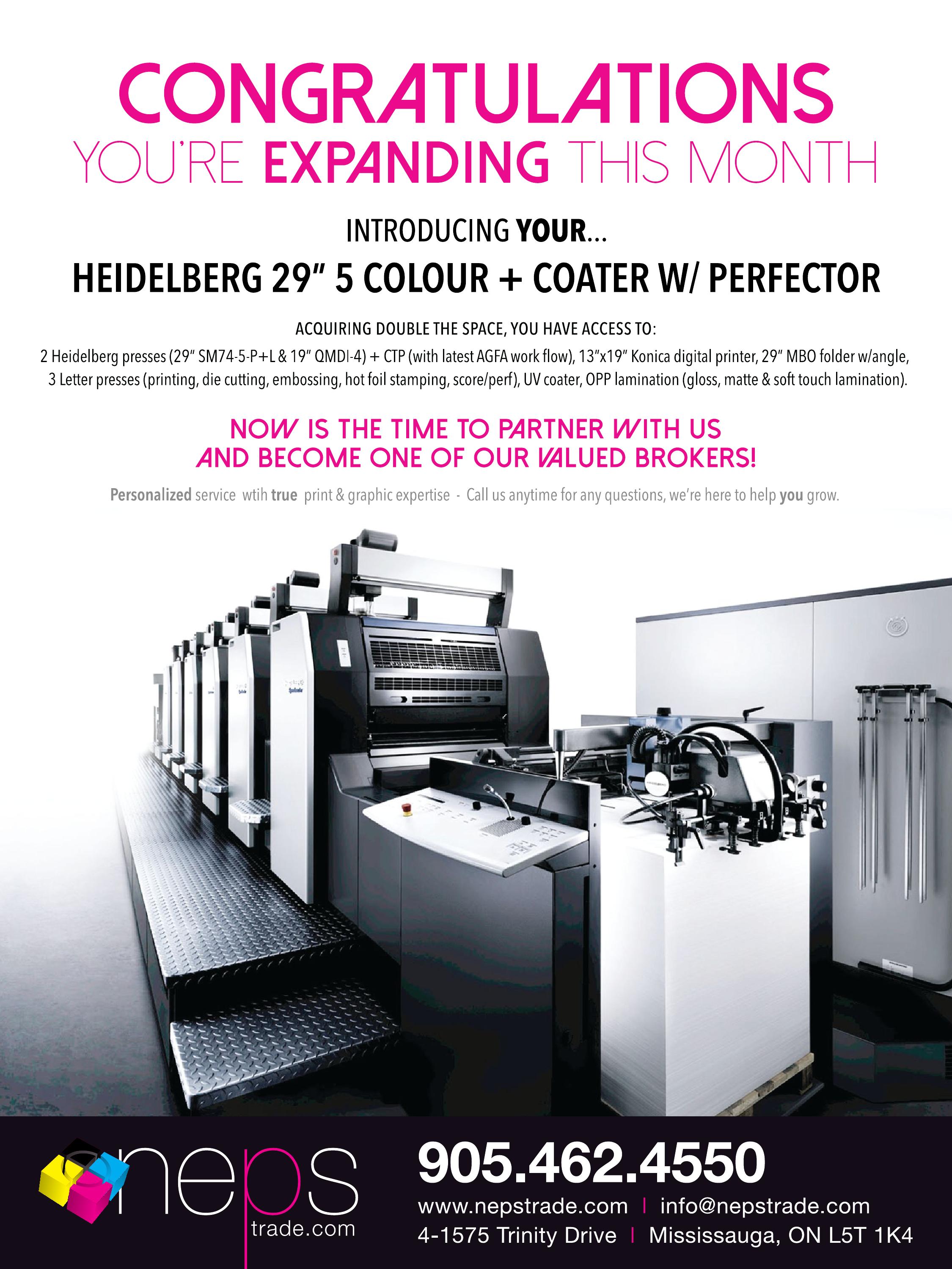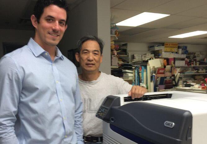 paperland Canada inc. of Markham, Ont., adds a DigiXpress Hybrid system, pictured with Brett Kisiloski (left) of distributor PDS and Paperland’s Paul Ngan. The DigiXpress hits 50 pages per minute and includes white and clear colour channels.