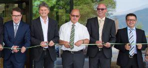 CEO Reto Eicher (second from left) opens swissQprint’s new home.