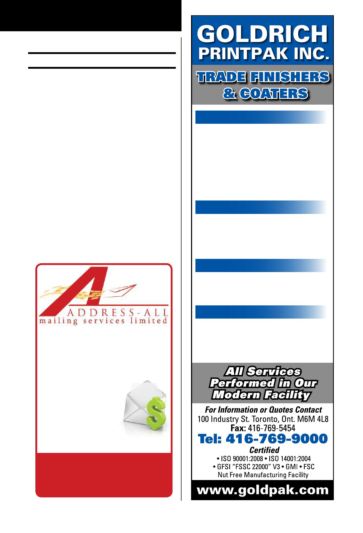 Rochling Engineering Plastics 519-941-5300 www roechling-plastics ca Royal Envelope Ltd. 905-879-0000 www.royalenvelope.com See our ad on page 36
