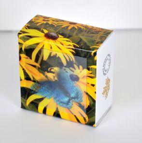 Production: This 10,500-piece run was printed at 10-micron on a 10-colour Heidelberg CD 102, for the box, and a 6-colour CD 103 for the lenticular. The box uses Printkote C2S 20pt, while the 100-dpi lenticular piece includes foil in the eyes, reversed web for doming compound, both in a 4-colour process. Finishing involved a stamp-able gloss lamination, deboss, die-cut and glue to final. Lowe-Martin points to challenges like cutting the lenticular into small lifts, hand affixing the lenticular to the debossed square and matching the image crossovers from the lenticular to the box. The lenticular application was 17 frames of movement.