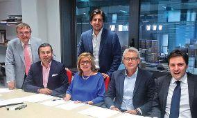 Dr. Ciro Gentile, Managing Director of ACM (left to right); Thomas Potzkai, Head of Service and Project Management, KBA-Digital & Web; Mariarosaria Barile Gentile, Managing Director, ACM; Vincenzo Gentile, General Manager, ACM; KBA Service Manager Martin Schoeps; and Dr. Guiseppe Gentile, General Manager of ACM.