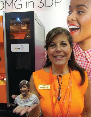 Julie Reece of mcor with her own 3D printed model produced by the iris 3D printer using office paper instead of plastic.
