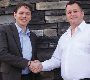 Kees Nijenhuis, VP of North American operations for MPS, celebrated a new press distribution deal with Jerry Wynia (right), President and owner of Northern Graphic Solutions (NGS). This includes MPS’ flagship EF printing press, which is to be sold through NGS in central and eastern Canada. Available at 13-, 17- and 20inch formats, the EF press includes