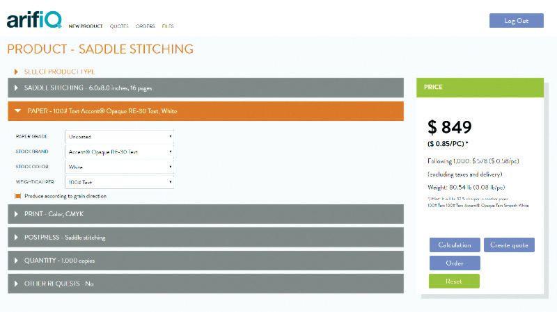 In December, arifiQ Development introduced arifiQ Entry for the ability to quickly obtain quotes and place orders for custom print jobs. The company explains arifiQ Entry relieves the bottleneck – from several hours to many days – between the time a customer approves a job, and when he or she gets an estimate/ quote back from a printer. Available at a flat monthly rate, arifiQ Entry uses the company’s pre-existing arifiQ core engine. arifiQ Entry also exports to, or integrates with, any MIS, ERP, prepress, or other order management system. It also offers 12 of the 14 major benefits available in arifiQ’s high-end solution, arifiQ PRO. The salesperson or other professional uses arifiQ Entry to access the printer’s estimating server from anywhere, at anytime, using any internet connection. In seconds, arifiQ’s proprietary algorithms generate up to one septillion 1024 (or more) combinations based on the printer’s resources and cost variables, to arrive at a quote. Resources include printing presses, paper stock, and post-press machinery; while cost variables include