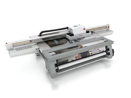 The printer prints in four colours in a single pass. The imaging system uses the company’s patented Dot Freeze technology (DFT) to “selffreeze” ink drops immediately upon contact with the substrate. This results in a rapid change in temperature, which turns high-viscosity inks coming from the printhead nozzle into low-viscosity, immobile ink droplets when they touch the material. Konica Minolta says this eliminates mottling and allows printing on porous materials while extending the CMYK colour gamut, reducing the need for special