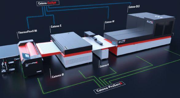 Flint Group recently announced its Catena+ fully automated plate processing line, featuring equipment modules Catena-E (UV LED exposure), Catena-W (solvent plate processor) and Catena-DLS (dryer, light finisher and plate stacker combination with robotized plate transport). The modular system can join together for various levels of automation with minimum operator intervention.
