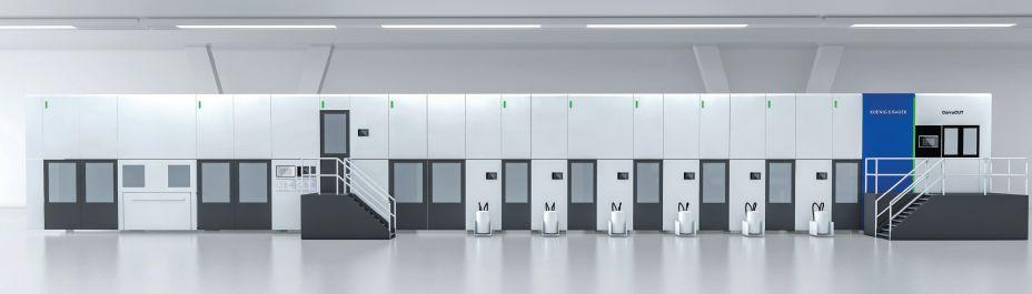 is a sheetfed flexo press with an integrated high board line rotary die-cutter.