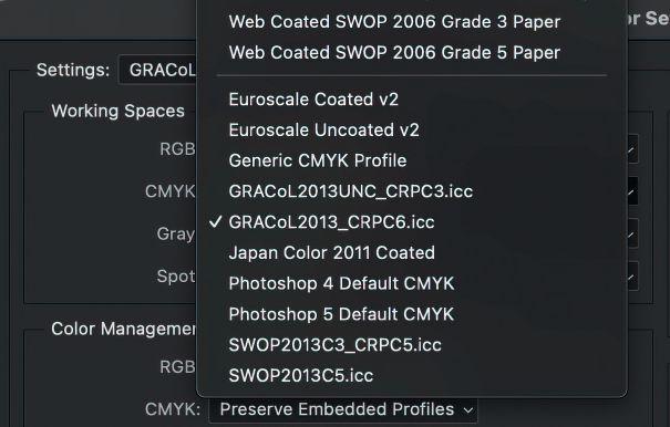 My test images feature multiple four-colour grey balance images. One of the most difficult things to achieve is a linear greyscale. When creating a linear greyscale test image, always ensure your CMYK colour space is GRACoL (Figure 1). This ensures your CMYK values are correctly targeting your press.