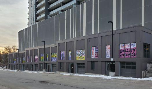 The Kitchener-Waterloo branch of the FastSigns franchise network recently used Drytac Polar Smooth 150 matte white polymeric film to create a series of window graphics to promote a major development project in the local area.