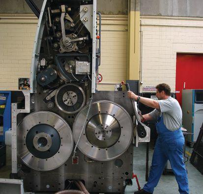 At the Bugra trade fair of 1914, Heidelberg displayed the first prototype T platen to the world. This early press, known as the Express, would be altered several times before it finally became legend. 1914 was also the year The Great War began and very little development or production materialized on the T platen until 1921. By 1927, the press had another facelift. The gripper mechanism was vastly improved and remained remarkably similar to the last version of 1985. Impression throw-off and micro adjust was really easy. Changing packing was just as simple as on a Gordon. The use of a Geneva motion or Maltese cross allowed for better registration and more stable movement of the grippers. This feature alone was an incredible advancement for its time.