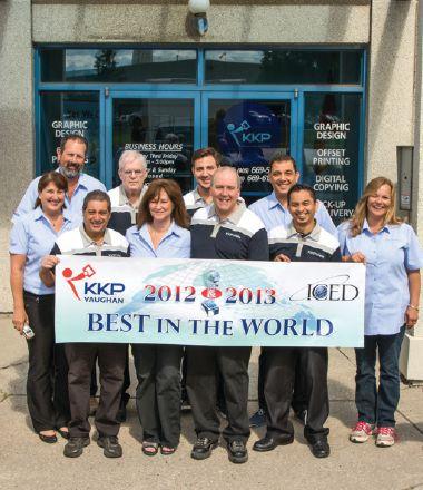 The Best in the World Award is given to the franchise in the ICED system, which, as defined by the organization, has demonstrated exemplary customer service, quality, efficiency and sales excellence. KKP Vaughan opened its doors in 1980 with a staff of three. The print shop, running four offset presses and three toner presses, now has a staff of 10 housed in a 6000-square-foot facility. The Toronto-area operation also holds a full bindery, graphics department and, most recently, wide-format printing capabilities.