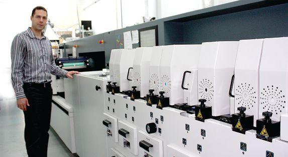 In addition to CMYK, the DSI at Multi-Action has been customized with options, including orange and violet (to cover over 90 percent of the colour gamut), opaque white, and a digital primer. The press features intermediate LED pinning and a chill drum, as standard features, while Multi-Action also installed some inline converting options on its press. This includes a flexo-coating station and semi-rotary die-cutting technology supplied by AB Graphic.