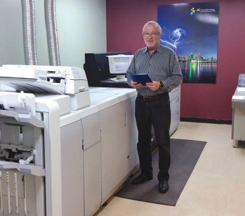 JC Accuforms, founded in 1968 in Toronto, Ontario, installed a new Canon imagePRESS C8000VP, pictured with President John Nickleford. The four colour press reaches speeds of up to 80 pages per minute on all media weights up to 350 gsm.