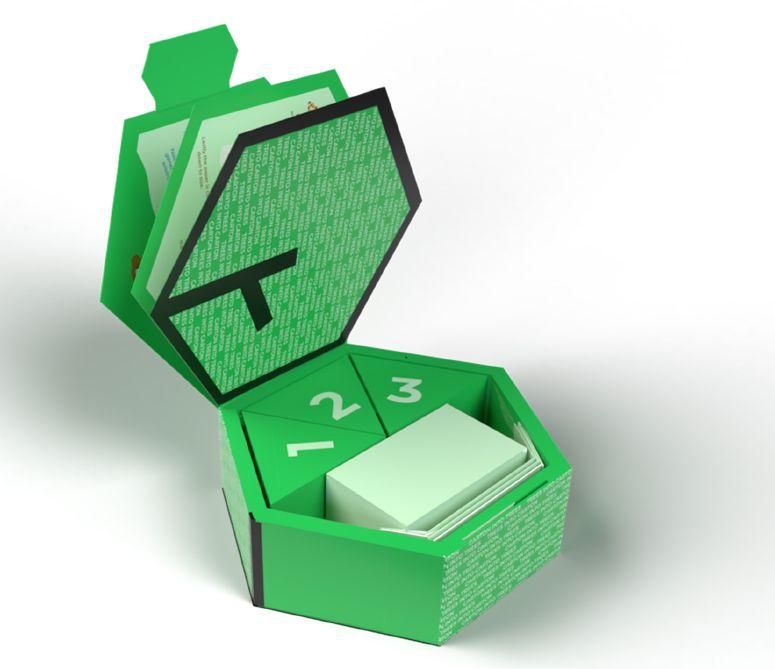 Dorotea and Laura’s winning design — a three-dimensional hexagon box — includes touchpoints to suit different students.