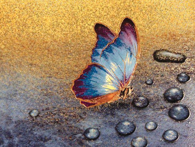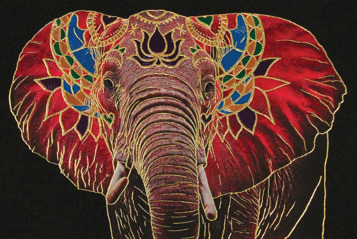 This technique creates an image for relief printing by hand cutting the stone surface. The stone is then inked by hand, with multiple colours at one time. The used art paper typically is 100 per cent cotton, acid-free, soft-sided, deckle edge, and well suited for these limited-edition art prints. The paper is then placed over the inked stone and paper is then burnished to transfer the ink to the paper.