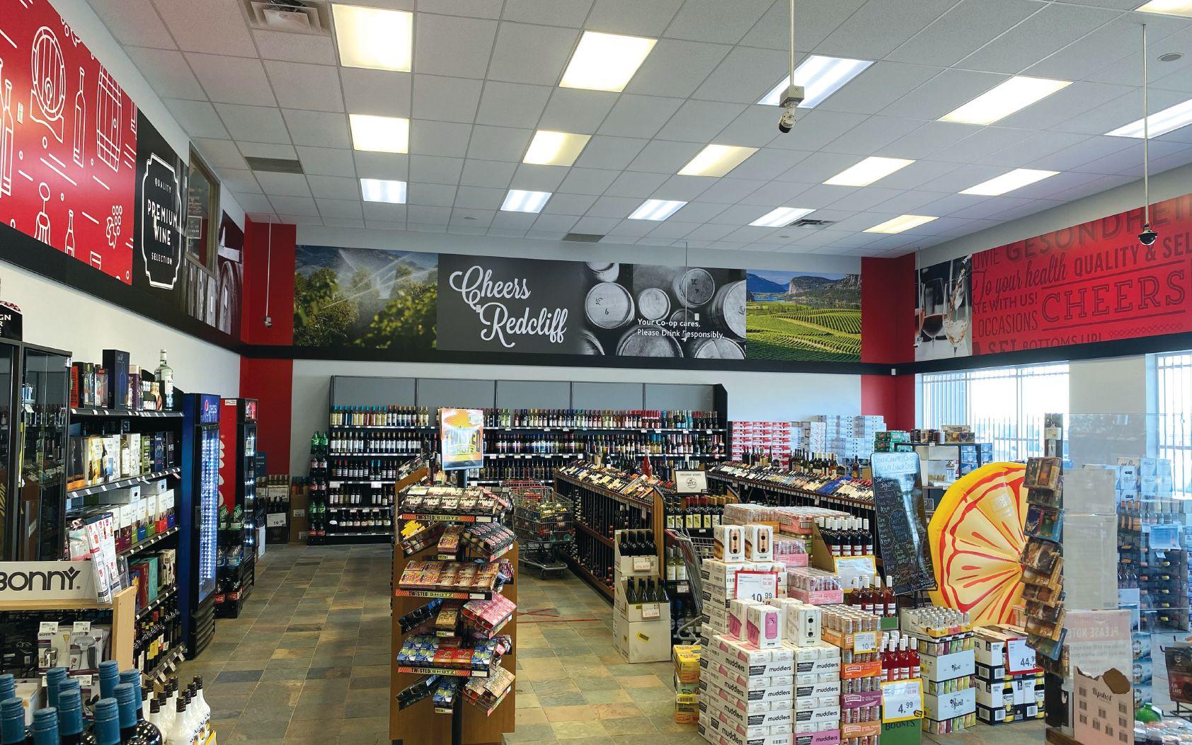Warwick Printing successfully printed and installed a wall mural for a liquor store in Redcliff, Alta., in a single day