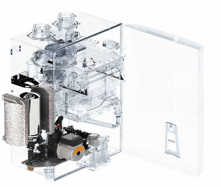 Réservoir tampon isolé intégré. Pas d'effet « sandwich d'eau froide » et aucun problème de débit minimal. Pompe de recirculation intégrée. Eau chaude sans interruption. Pas besoin de pièces externes coûteuses.