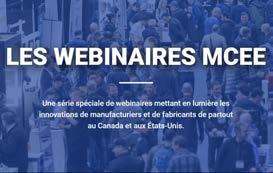 Les promoteurs du Salon Mécanex/ Climatex/Explotectriq/Éclairage (MCEE) qui, rappelons-le, devait se tenir les 7 et 8 avril cette année (pour la première fois au Palais des congrès de Montréal) ont décidé de tenir une série de 10 webinaires pour mettre en lumière les innovations de fabricants en exploitation partout sur le grand territoire du Canada et des ÉtatsUnis. Chaque webinaire est d’une durée de 60 minutes (12 h 30 à 13 h 30). Voilà une des avenues que les organisateurs – CMMTQ, ICPC, CÉTAF, CMEQ et EFC – ont décidé d’emprunter pour convier des milliers d’acheteurs et de décideurs de la mécanique du bâtiment à des rencontres virtuelles proposant un contenu à valeur ajoutée. Veuillez vous rendre au www.mcee.ca pour les détails de la programmation. Le coup d’envoi de ces webinaires a été donné le 7 avril (pour souligner