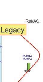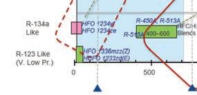 « Il est important de savoir que les équipements en cours d’installation (ou installés précédemment) qui utilisent des frigorigènes à PRP élevé continueront de pouvoir être approvisionnés avec ces derniers », a fait remarquer M. Zimmerman. Il a également partagé un tableau détaillé divisé horizontalement en trois niveaux (voir la figure 3 ). En haut, on trouve les frigorigènes à haute pression (comme le R-410a); au centre, on trouve les frigorigènes à moyenne pression (comme le R-404a); et en bas, on trouve les frigorigènes à basse pression (comme le R-134a).