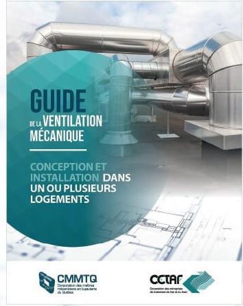 l’air et du froid (CETAF) ont publié la première édition du Guide de la ventilation mécanique – Conception et installation dans un ou plusieurs logements le 17 novembre dernier. Cet ouvrage a été réalisé dans le but d’actualiser les compétences de leurs membres et d’outiller l’industrie avec une documentation francophone adaptée au Québec. Offert en version imprimée et en version électronique sur le site de la CETAF et de la CMMTQ, ce document de référence remplace le Guide des bonnes pratiques en ventilation mécanique paru en 2014. Celui-ci a fait l’objet d’une refonte complète et a été actualisé afin de le rendre conforme aux éditions des codes et normes actuellement en vigueur. Un soin particulier a été apporté à la démonstration des différentes formules pour simplifier leur compréhension et leur application. Le nouveau Guide intègre également les exigences du chapitre I.1, Efficacité énergétique du bâtiment du Code de construction du Québec.