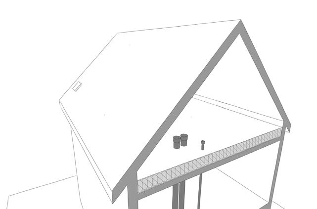 d’accumulation de neige. Cette conception devrait donc être évitée dans les régions à forte précipitation hivernale. La surface de toit disponible pour les modules photovoltaïques ne doit pas être obstruée par des cheminées, évents, puits de lumière ou pignons, et doit être suffisamment grande pour accueillir la quantité requise de panneaux photovoltaïques.