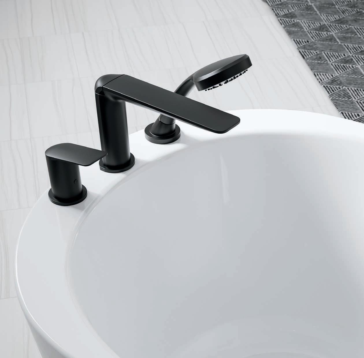 Doté d’un robinet de baignoire romaine à poignée unique avec douchette. Disponible en finitions chrome et noir mat. En savoir plus à fr.deltafaucet.ca.