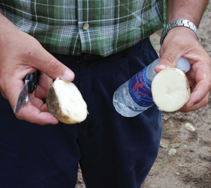 Another agronomic basic to be practised diligently is field scouting on a regular basis to better time pesticide applications and manage potential problems. “Field scouting allows growers to use pesticides only when necessary, which saves time and money,” Banks asserts. “On wet, cool seasons, late blight is a potential problem, but if it’s detected early, when there are only one or two small hot spots, these areas can be top-killed to eliminate sources of infection and reduce the rate of infection in the entire field.”