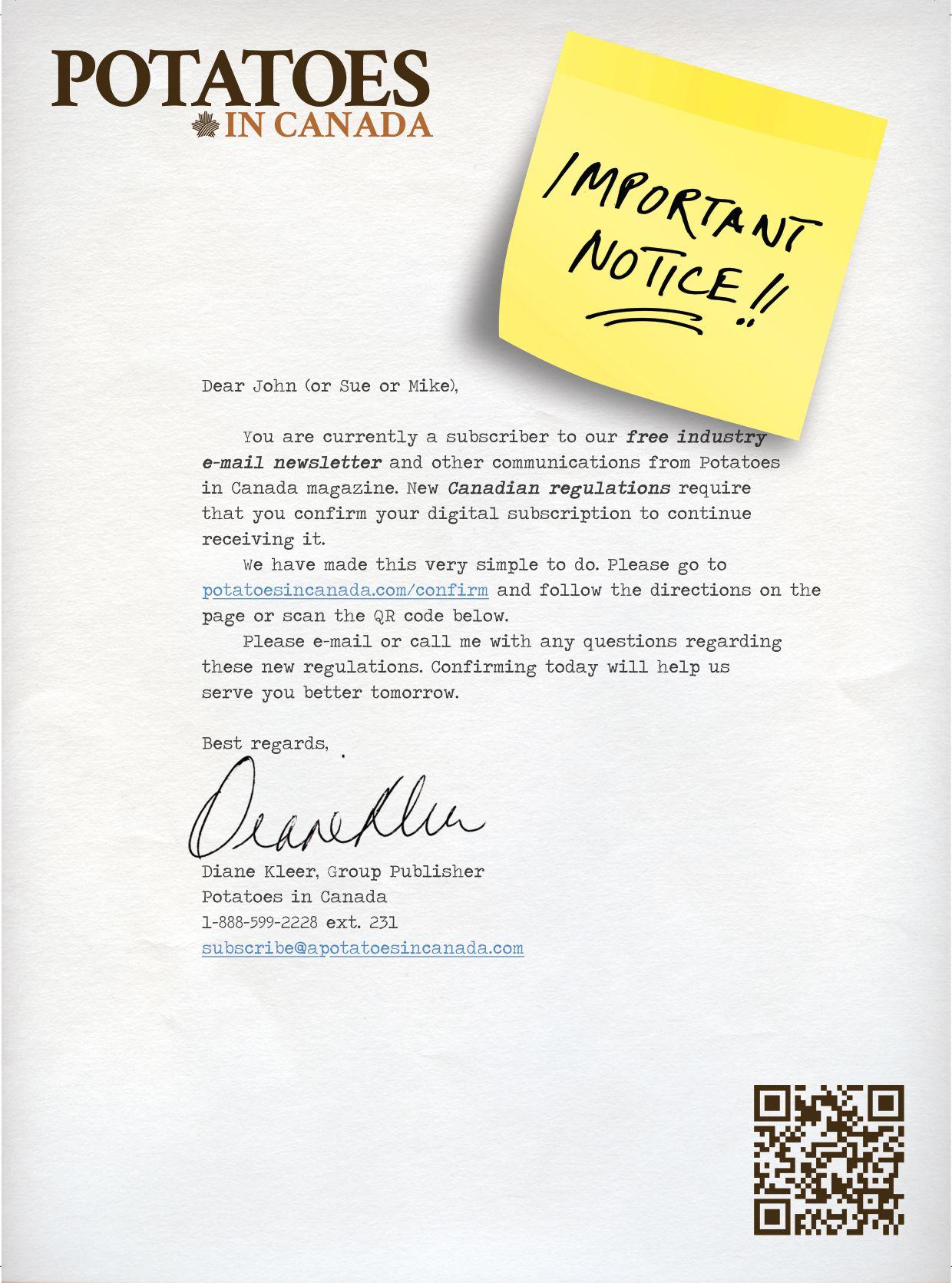 Potatoes in Canada - 4 issues - Spring, Summer, Fall and Winter 1 Year - $16 CDN plus tax All of the above - $80.00 Cdn. plus tax