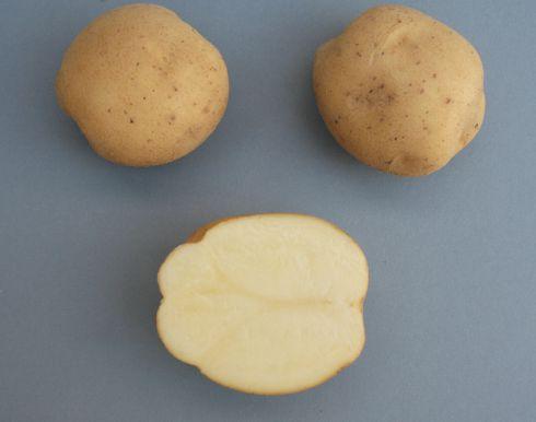 AR2014-03 FV15559-79 (Andover x F87031) chip variety is also a round selection with slightly flaky buff skin, creamy flesh, very good chip colour and resistance to PVX. It does better than other chip varieties in cold storage, prolonging shelf life and reducing the need for chemical treatment to control disease that can occur in storage.
