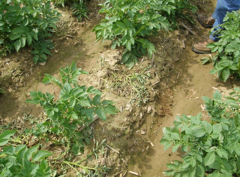 Potato plants decimated by Colorado potato beetle.