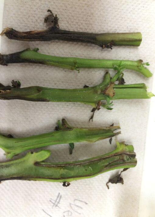 Examples of stem lesions and vascular browning caused by Dickeya.