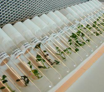 ABOVE: High value potato breeding lines grow as tiny plantlets in hundreds of test tubes at the CPGR lab.