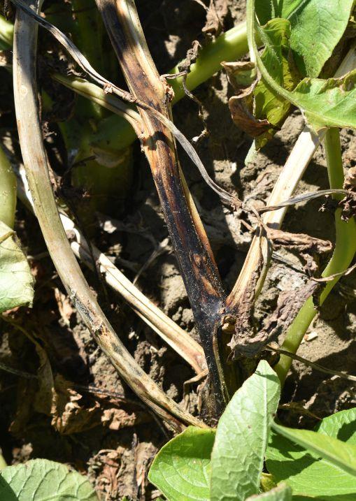 “Surprisingly, you also see blackleg in hot, dry summers. In those conditions, it is all about water and transpiration for the plant, and this disease can compromise the plant’s ability to transport water. So, late in the season, you start seeing wilted plants with blackleg on the stem.”