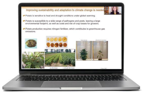 ABOVE: A screenshot from the virtual Canadian Potato Summit, featuring a presentation from Dr. Helen Tai, researcher with Agriculture and Agri-Food Canada in Fredericton.