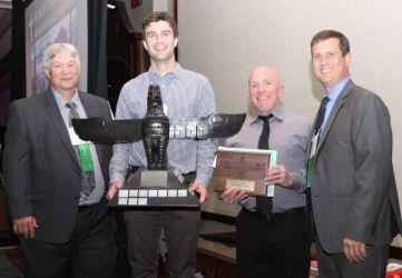 2017 HR MacMillan Trophy for BEST PAPER awarded to MATTHEW PORS & REECE MITCHELSON, West Fraser-Hinton Pulp with PACWEST Chair & Program Chair, GORD START and STEVEN BULL.