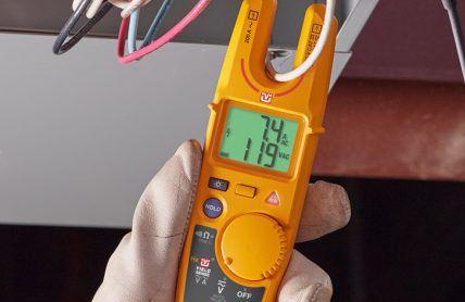 Fluke says it has developed FieldSense technology that takes the open-fork, current-measuring functionality of its existing T5 electrical tester and added AC voltage measurements, so users can use the tools to take simultaneous voltage and current measurements without test leads. The new T6 true-rms electrical testers, the first tools to use FieldSense technology, are now available at local distributors and retailers. Contacting electrical conductors with test leads requires metal-to-metal contact, which carries the potential for arc flash or electrical shock, but according to the company, FieldSense technology eliminates