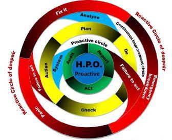 the outside circle, labelled Reactive Circle of Despair: breakdown, panic and fix. The middle circle is Continuous Improvement: plan, do, check and act. Finally, the inner circle is the Proactive Circle – report, act and audit – which is the goal of the Windsor mill.