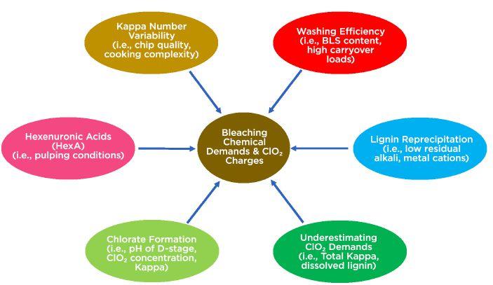 Mathur et al. (2018) wrote “In the absence of carry-over measurement, mills compensate by applying a high operator bias to cover peak carry-over demand, which results in higher bleaching costs.” They also mentioned that in order to overcome this challenge, the pulp industry is transitioning from a fibre kappa number measurement to a new total kappa measurement for chlorine dioxide (ClO 2) charge control.