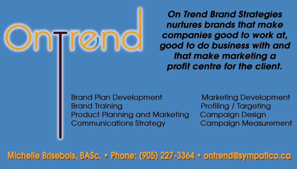 Michelle Brisebois is a marketing professional with experience in the food, pharmaceutical and financial services industries. She specializes in brand strategies. Michelle can be reached at briseboismichelle@sympatico.ca.
