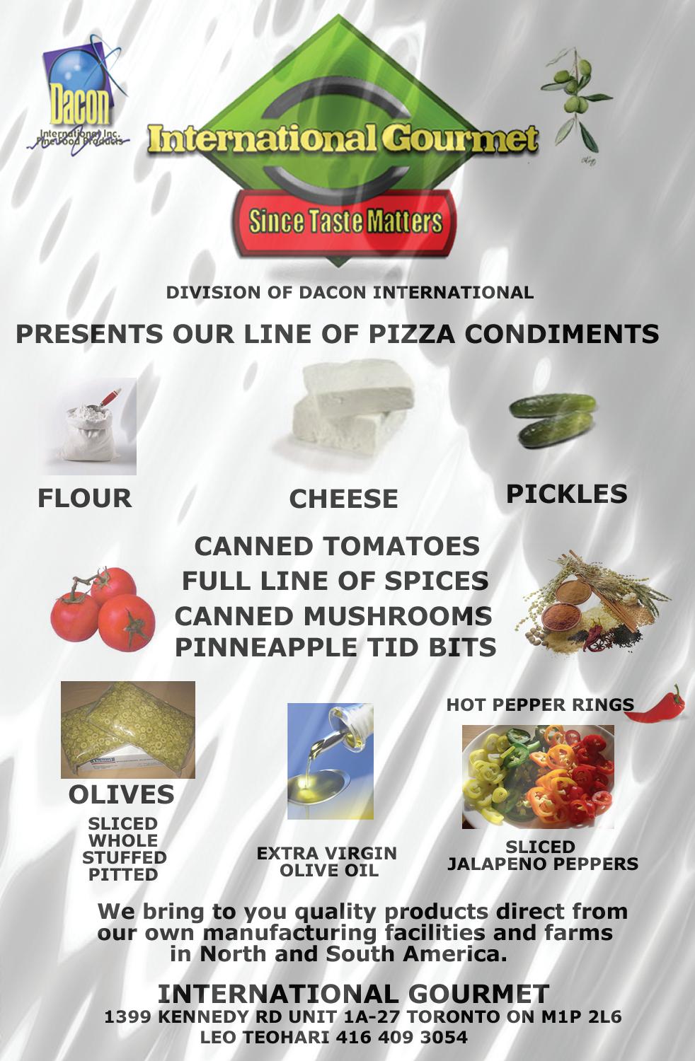 FOR ALL YOUR PIZZA NEEDS... Ricco Food Distributor. Your complete pizza supply distributor, serving southwestern Ontario. For further information and pricing details, call Don Windsor at 1-519-245-7081 or fax 1-519245-7126.