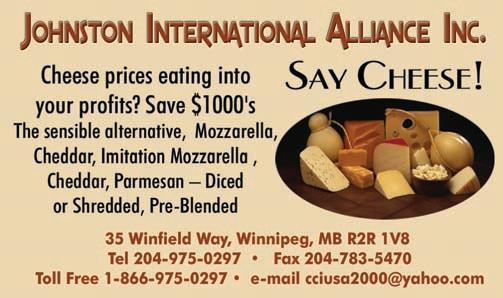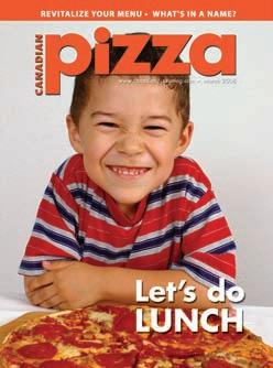 From time to time, we at Canadian Pizza Magazine make our subscription list available to reputable companies and organizations whose products and services we believe may be of interest to you. If you do not want your name to be made available, contact our circulation department in any of the four ways listed above. No part of the editorial content of this publication may be reprinted without the publisher’s written permission. ©2008 annex Publishing & Printing Inc. all rights reserved. Opinions expressed in this magazine are not necessarily those of the editor or the publisher. No liability is assumed for errors or omissions. all advertising is subject to the publisher’s approval. Such approval does not imply any endorsement of the products or services advertised. Publisher reserves the right to refuse advertising that does not meet the standards of the publication. www.canadianpizzamag.com