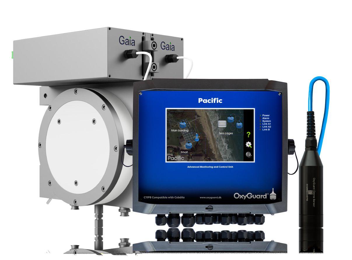 An optimal solution is the ozone generator, Gaia, developed by Water ApS. Gaia makes it possible to do the cleansing right by the fish tank. One big advantage of this system is that it works with the OxyGuard equipment, including the Pacific, a measuring, monitoring and control system, and the Ozone Sensor, which detects even the smallest amount of left-over ozone. Farm operators can even manage the system online with the digital farm management tool Cobália. Gaia is one of the most powerful and high-producing generators on the market. It is a modular ozone generator separated into smaller units working individually. The modular feature of the generator makes it possible to place the ozone generator directly at the treatment site and treat the water without loss of ozone. This makes the ozonation process more efficient and cost-effective.