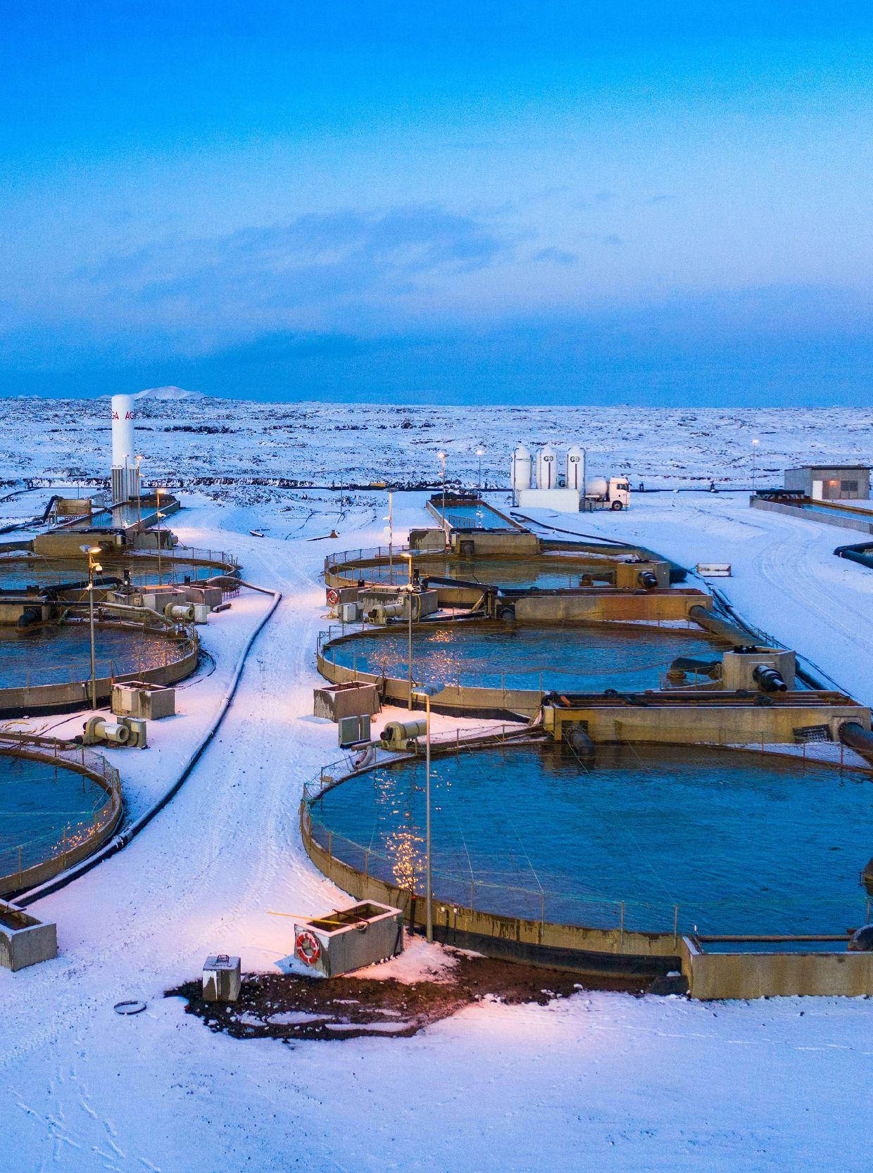 The salmon will be raised in seawater inside huge concrete tanks, each with a capacity of 5,000m3, or two Olympic sized swimming pools. Due to a hybrid flowthrough system, 65 per cent of the water can be reused, and 35 per cent is new supply in the form of filtered fresh seawater. Combining clean and fresh seawater with reused water means, that energy consumption for pumping and heating of water is minimized. Waste and feed residues from the production are collected and used as raw material for biogas production and fertilizer. An impressive project combining rational operation with fish welfare and minimal environmental impact.