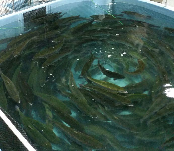 for rearing, manipulating photoperiods for spawn timing, and easy changes to tank configuration. Compared to traditional hatcheries, Mora is built like a Lego set. Tanks and plumbing systems all sit on a concrete slab, so as the program needs change, only simple hand tools are required. Try changing the configuration of concrete raceways, and you’ll need a team of jackhammers, a cement plant and dollar figures with six zeros trailing.