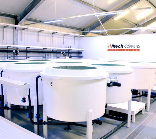 Mora takes advantage of RAS for water treatment: housing all rearing vessels indoors, increased swimming velocities